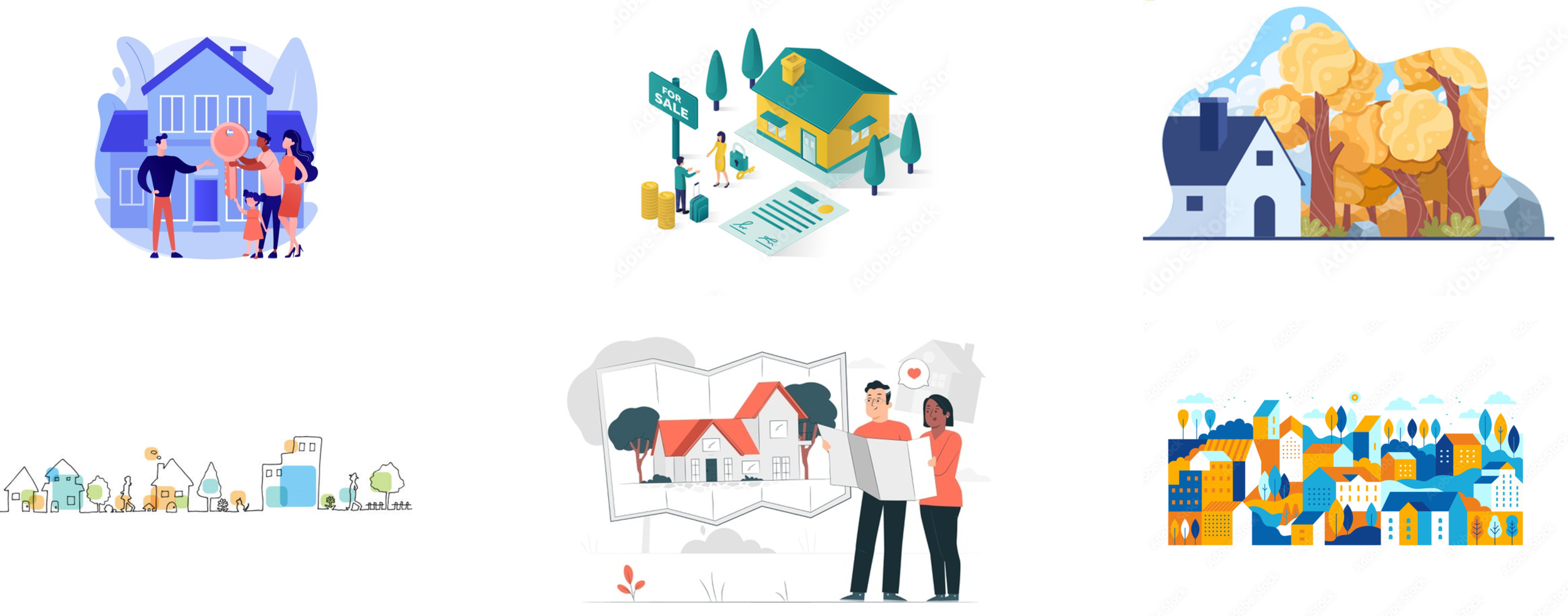 Rationale: I chose Flat illustrations because the app will feature ‘real’ photos of properties and I wanted the users to get a break from the monotony